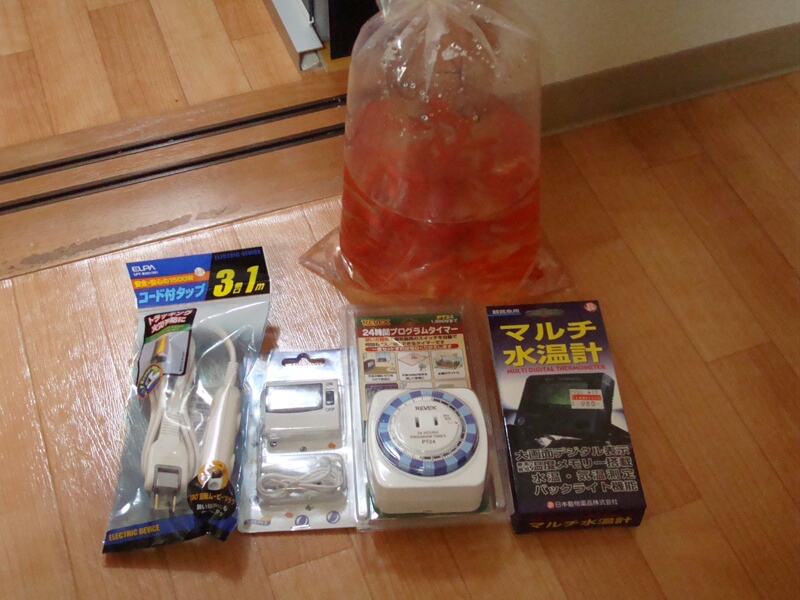 ついでなので、2000水槽にも水温計と、照明点灯用タイマー、