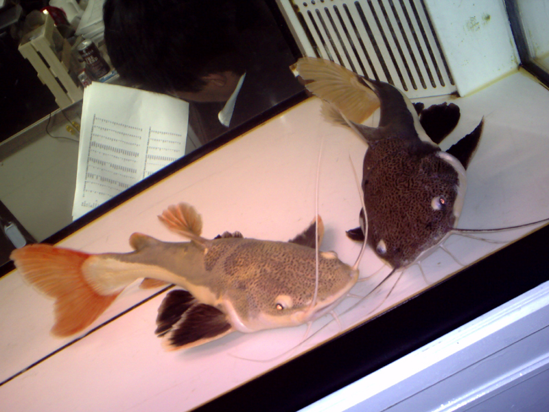 会社水槽、底板が白なので、今まで居たなまずんが、随分美白になってます。