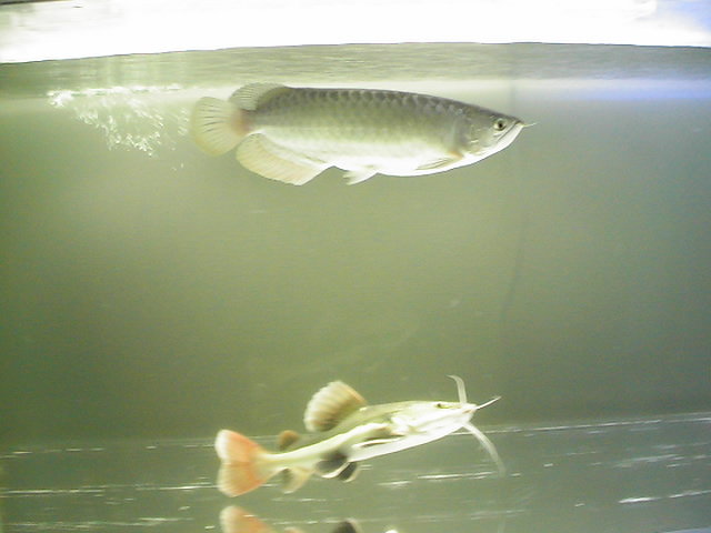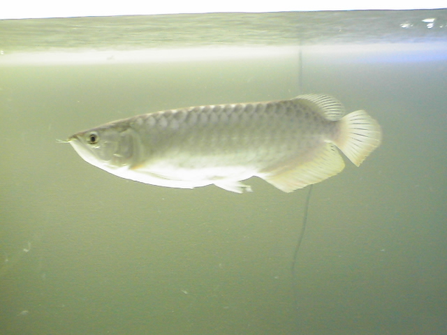 色的にはおそらくゴールデン系の種類だと思います。幼魚の時の光沢はまさにプラチナ色で、非常に珍しいアロワナです。