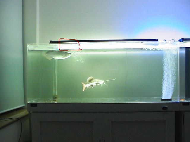 水槽上部のフランジ?って2本付いてるし、150cmぐらいの水槽なら別に一本折れてても使えるのでは?
