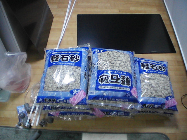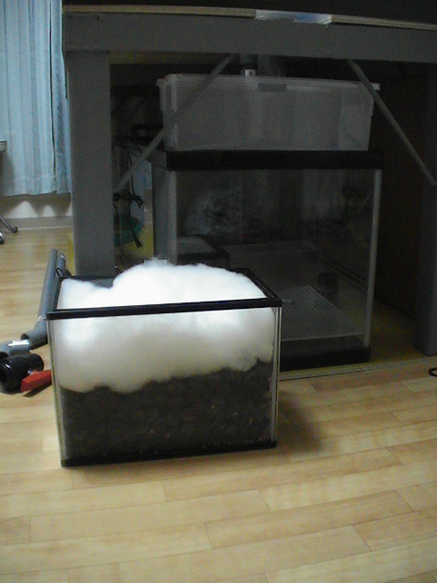 今日は何も出来ないので、軽石洗って濾過槽に入れてみます。