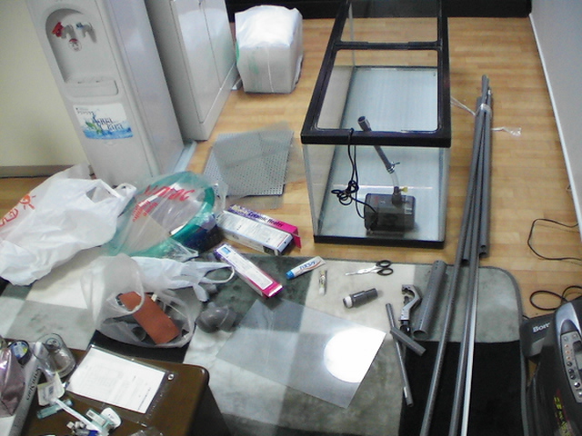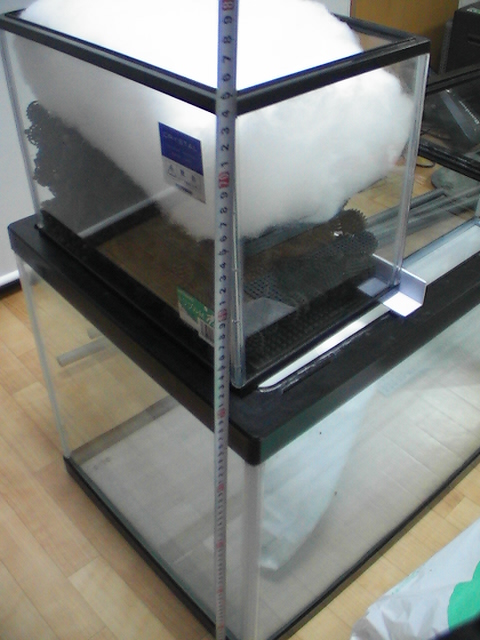 水槽台高さ70センチしかなく、その中に高さ45センチの濾過槽。